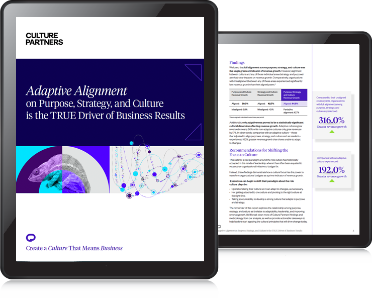 With Culture Partners, you can create an adaptive culture aligned with your organization’s purpose and strategy to drive better business results.