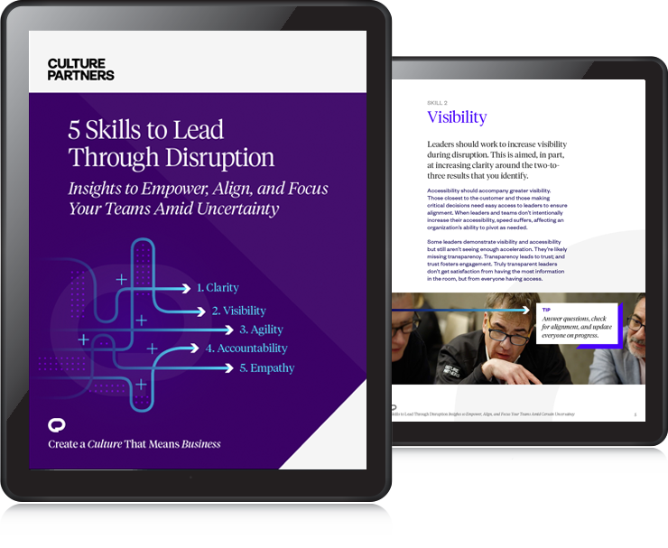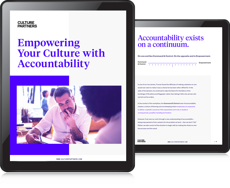 From multi-year journeys to full-day workshops to one-hour keynotes, Culture Partners brings culture change and greater accountability to your organization, tailored to your priorities and objectives.