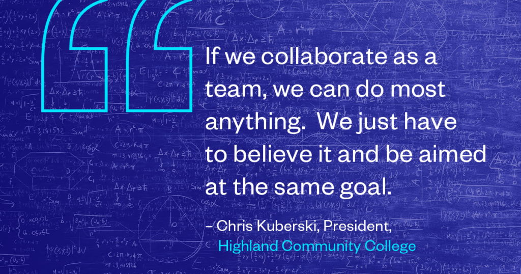 As the incoming president of Highland Community College in Freeport, Illinois, Chris Kuberski met challenges right off the bat. Surveys and other internal data indicated trust and accountability issues. A culture challenged by little active listening and respect for differing perspectives had taken hold over time. It was time for a change.
