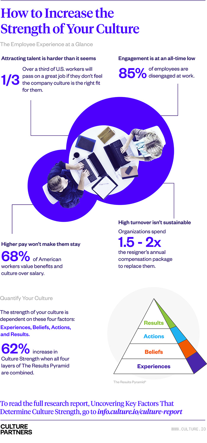 Leaders can open the door to real culture change by first identifying that Culture Strength is possible and achievable only if you connect, from the start and for the long haul, with the real experiences your people are having on a day-to-day basis. Open the door to Culture Strength: